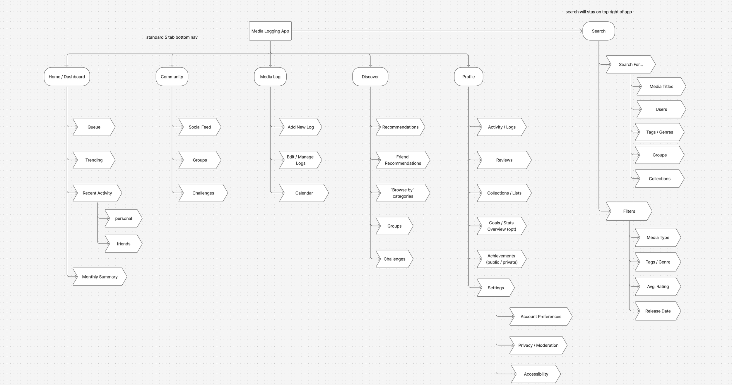 With our personas made and an idea of what users want, I create a site map to solidify ideas on how the app would be navigated and then designed a trio of user flows (one catered to each user persona) based on key insights