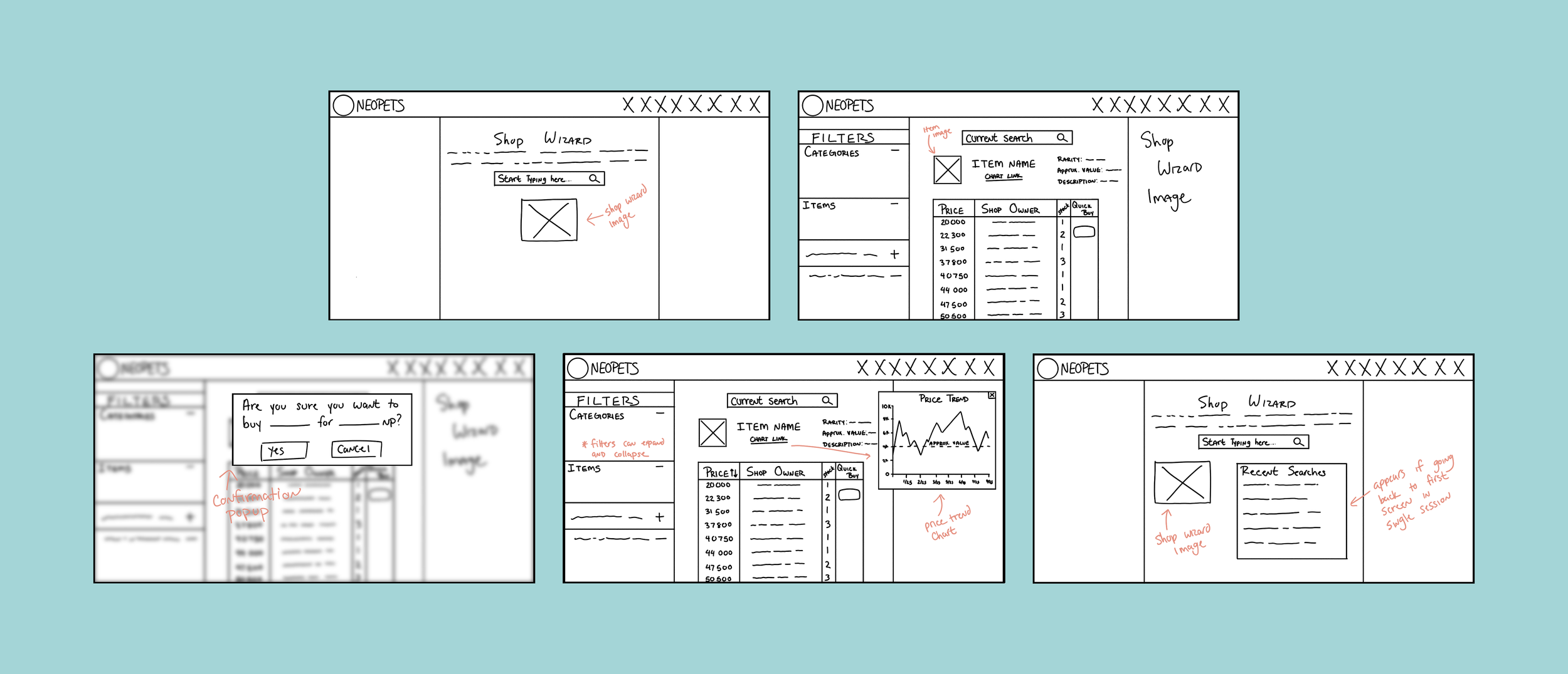 This redesign of the Neopets Shop Wizard focuses on improving usability and efficiency while preserving the nostalgic look and feel that long-time players know and love.