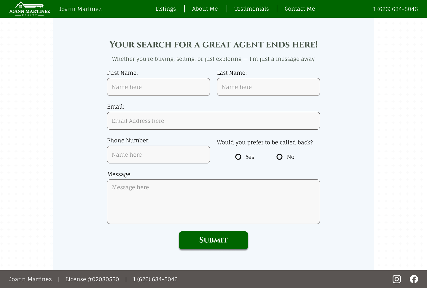 A modern real estate website built to showcase listings, highlight the agent’s personality, and make contacting simple and seamless.